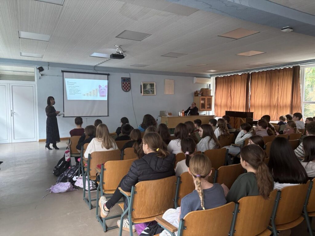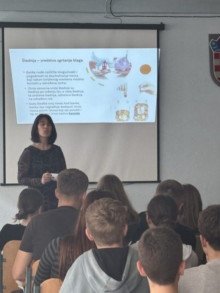 Svjetski dan štednje u OŠ I.B.-M. Orahovica obilježili smo u suradnji sa Slatinskom bankom prigodnim predavanjem gospođe Mirele Milak i gospodina Juraja Nerovčića. Tim povodom učenici predmetne nastave upoznati su s povijesnim razvojem novca, pojmovima štednja, kredit, kamata, bankovno poslovanje i ostalim. Podsjetili smo se i opasnosti internet kupovine. Zahvaljujemo gostima na prigodnim darovima, suradnji u višegodišnjoj tradiciji koja pridonosi povezivanju ostvarenja nastavnih ishoda sa lokalnom zajednicom te financijskoj pismenosti učenika. Radujemo se budućim zajedničkim aktivnostima.